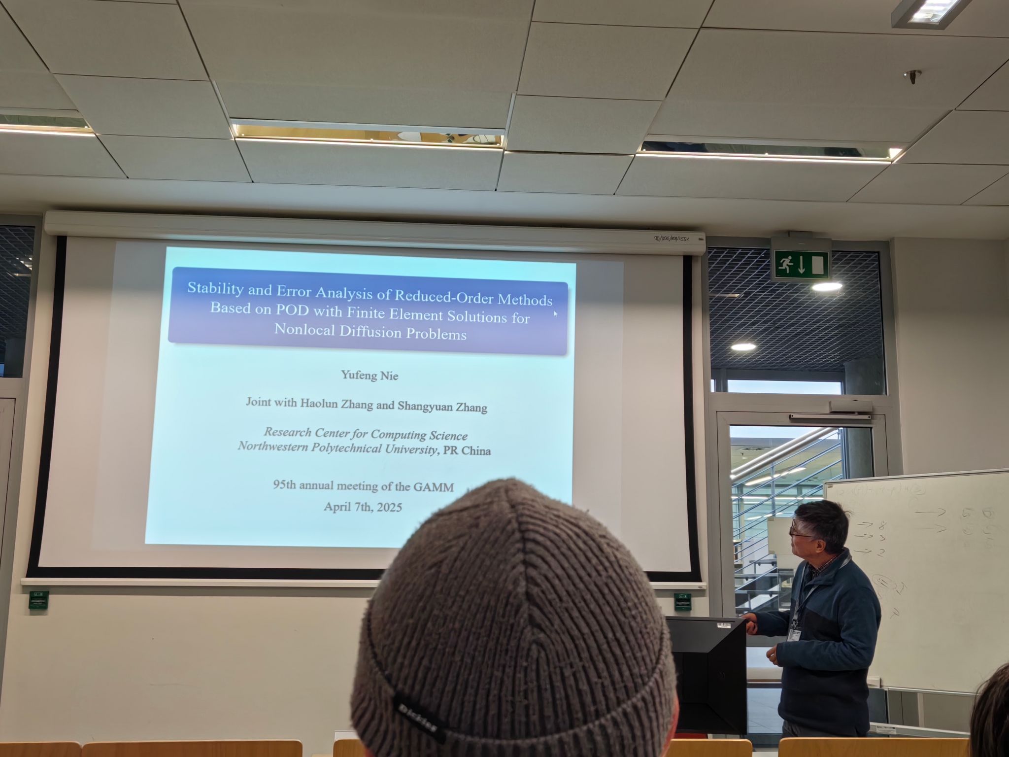 聂玉峰教授的学术报告《Stability and Error Analysis of Reduced Order Methods Based on POD with Finite Element Solutions for Nonlocal Diffusion Problems》引起了与会学者的广泛兴趣和热烈讨论;都琳教授的报告《Data - Driven Prediction of Dynamic Systems based on Sparse Reconstruction and Neural Networks》展示了前沿的预测技术;肖曼玉教授的《Large - Scale Structural Transient Dynamics Optimization through Integrated Reduced Models》提出了创新的研究方法;彭江军副教授的《Hyperspectral Image denoising via Low - rank Tucker decomposition with Subspace Implicit Neural Representation》则展现了先进的图像处理技术。这些报告都受到了在场学者的肯定与好评。