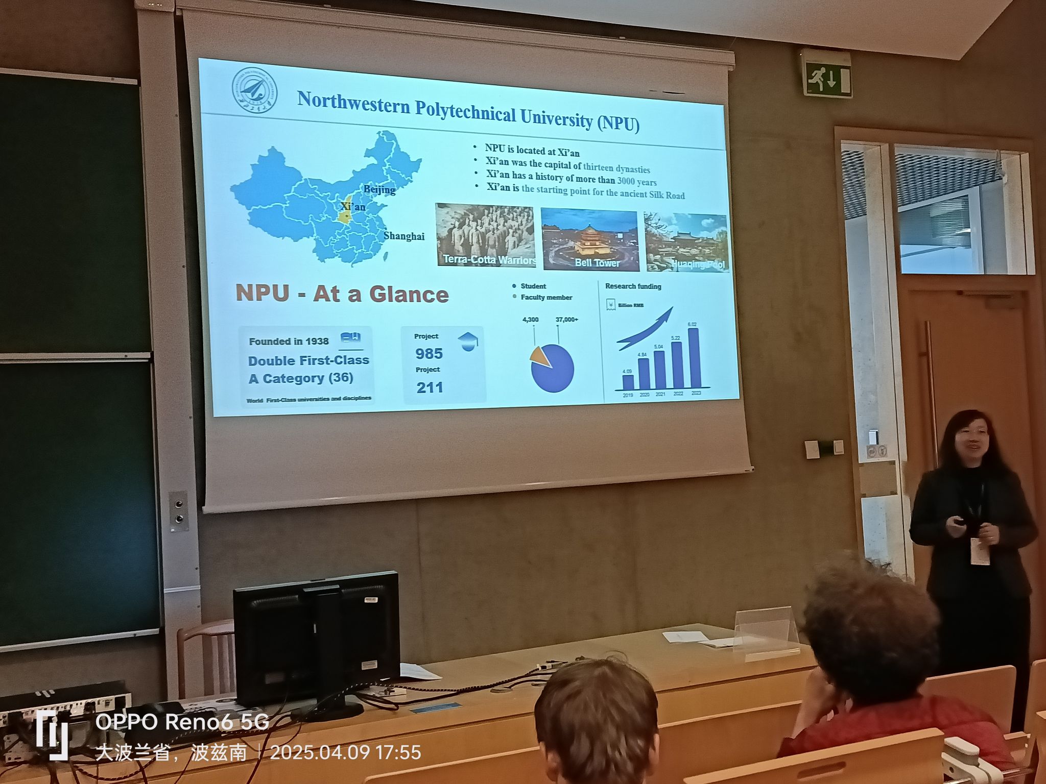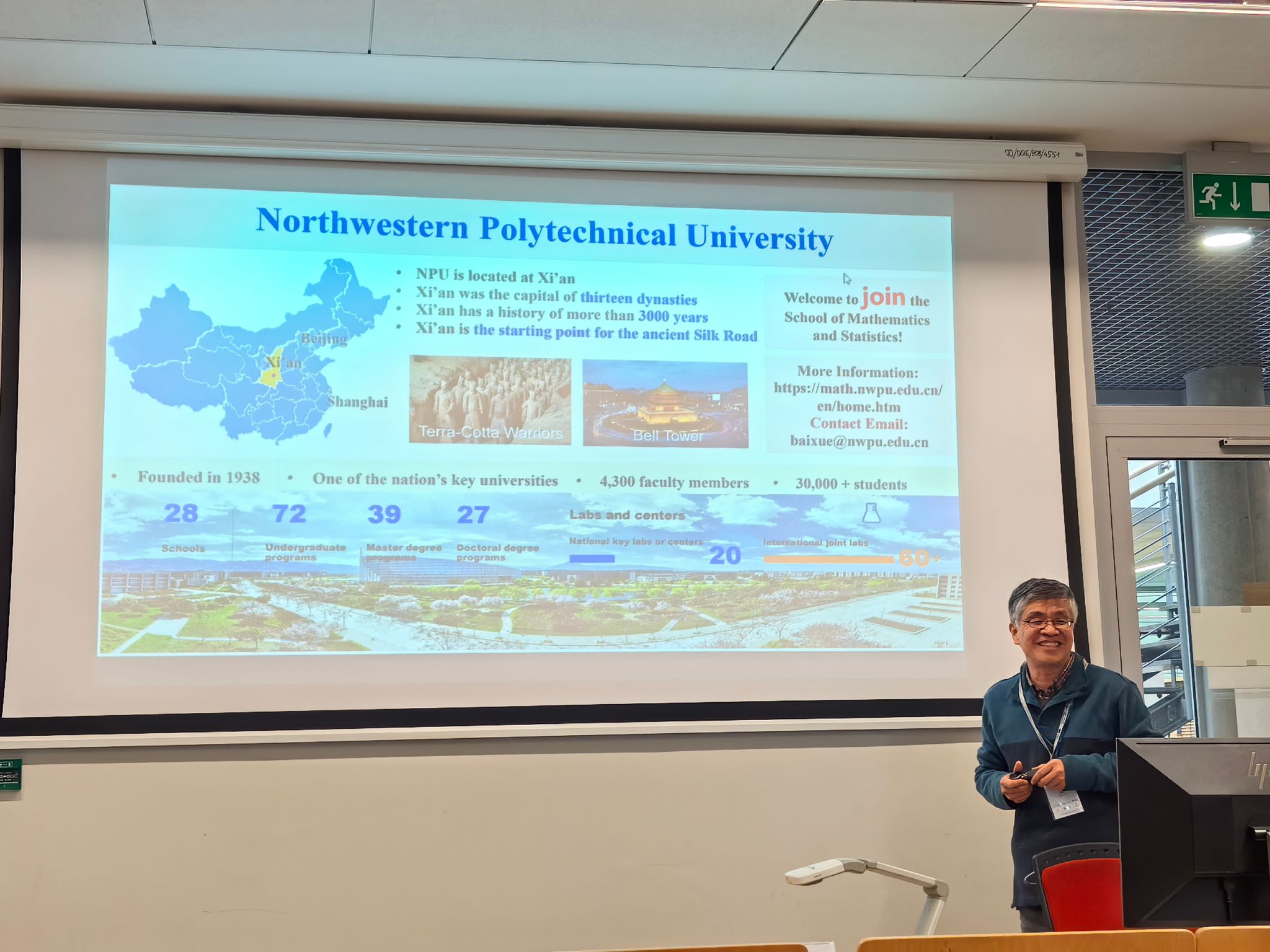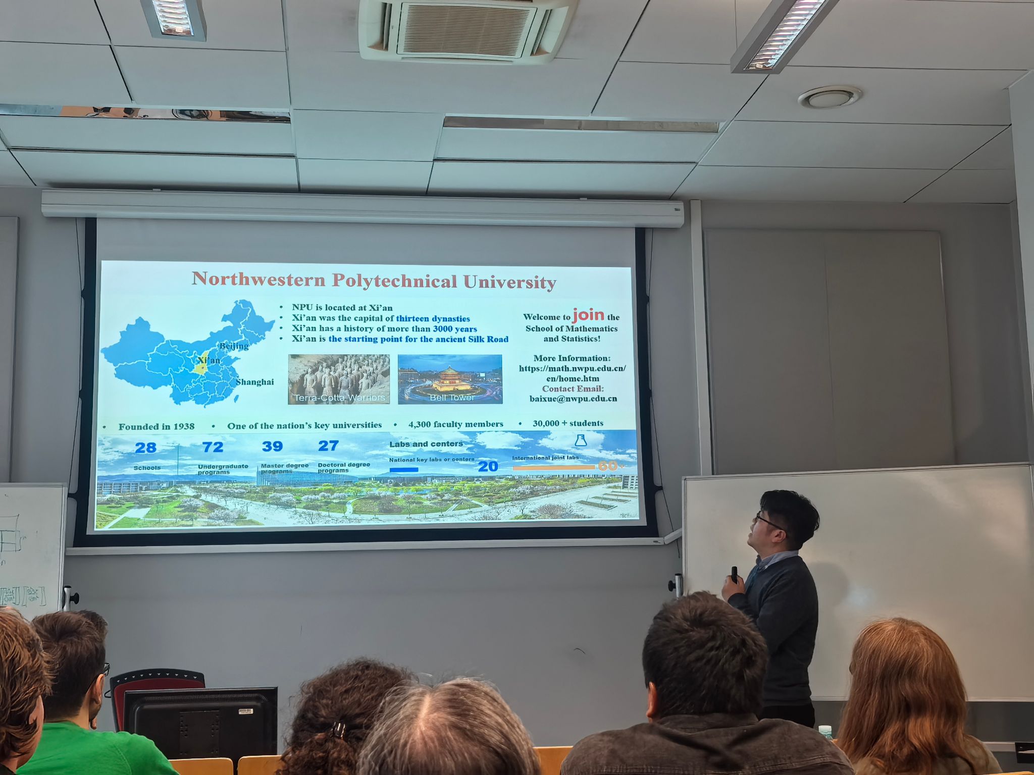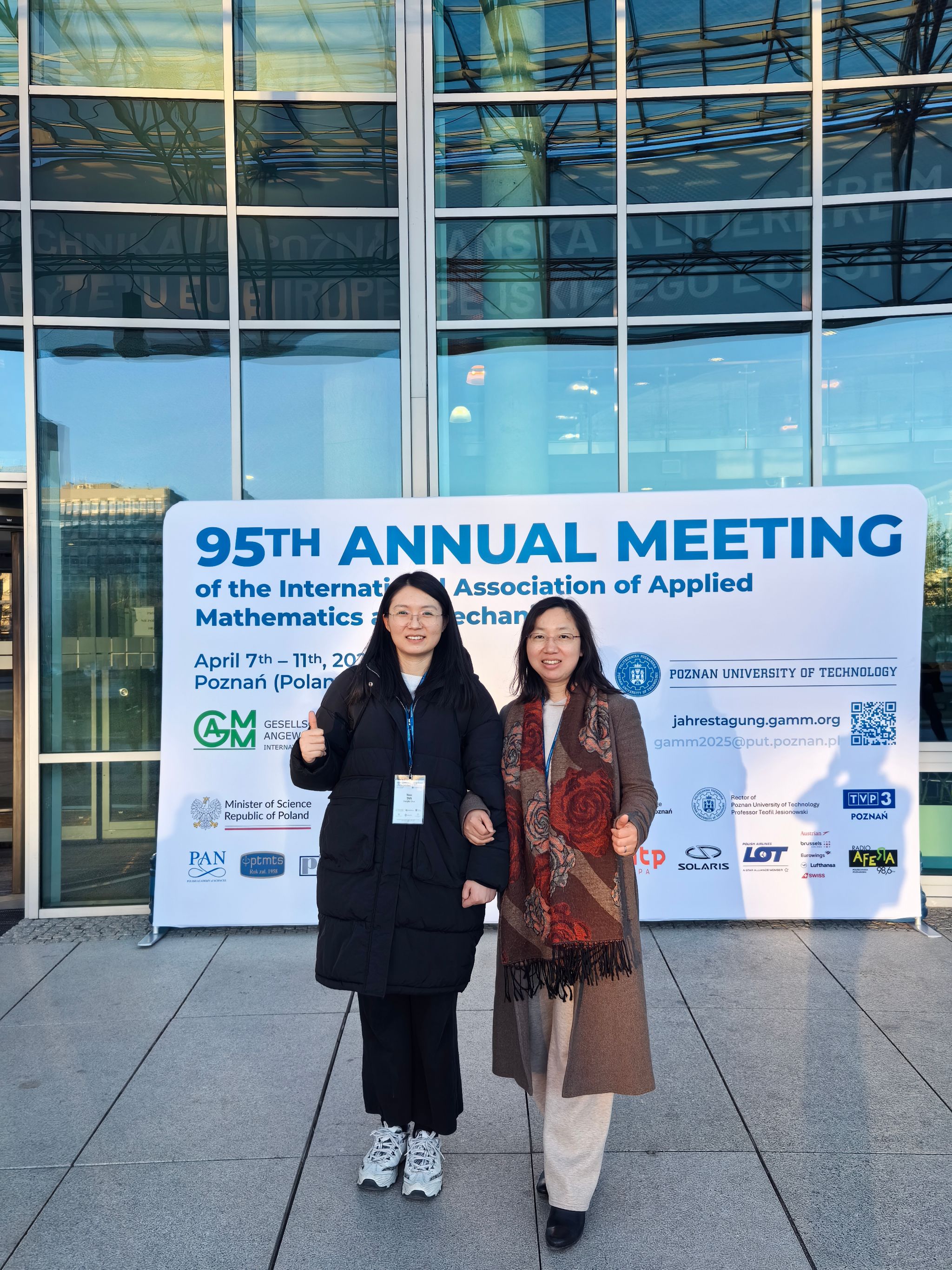 4月7日至10日,代表团赴波兰波兹南参加“第95届国际数学与力学年会”,并在分会场做报告、进行引才招聘宣讲。会议期间,代表团结识了来自波兰数学研究院、慕尼黑工大、德国亚琛工业大学等众多欧洲高校的留学生及博士生。聂玉峰院长、都琳院长和国际交流与合作办公室主任肖曼玉教授与这些留学生逐一深入交流,详细介绍西工大的引才政策。留学生们对入职西工大表现出浓厚兴趣,为后续人才引进工作奠定了良好基础。